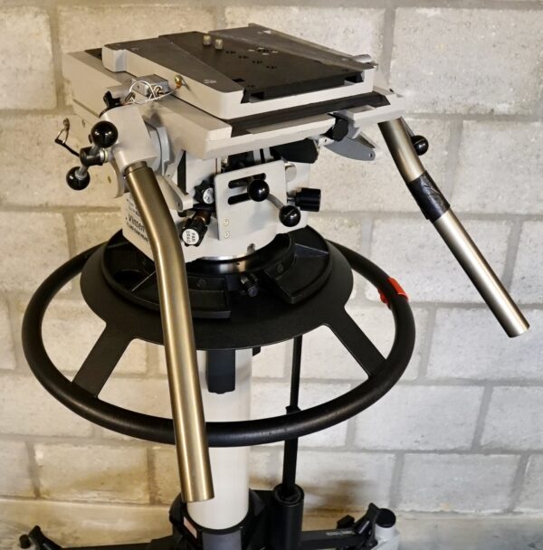 The pedestal is designed for heavy broadcast cameras and can easily